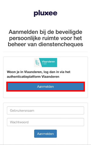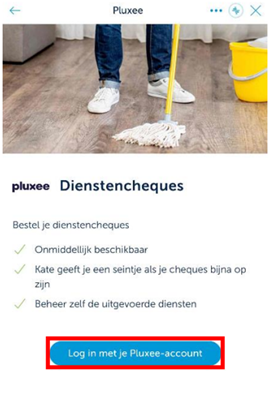 - Sélectionnez « Titres-services » et puis appuyez sur « Connectez-vous avec votre compte Pluxee ».