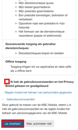 - L'application mobile KBC vous demande votre autorisation pour accéder à votre compte Pluxee pour les titres-services.